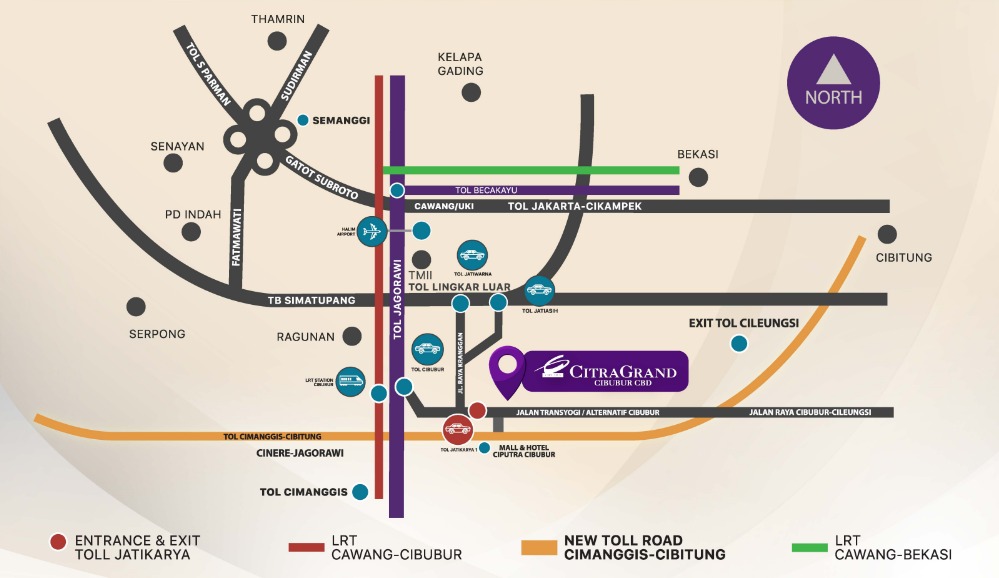 Sebagai cluster perumahan Cibubur yang benar-benar berada di tengah Cibubur, tepatnya di sepanjang Jl. Alternatif Cibubur. CitraGrand Cibubur CBD akan memberikan Anda banyak kemudahan akses seperti: